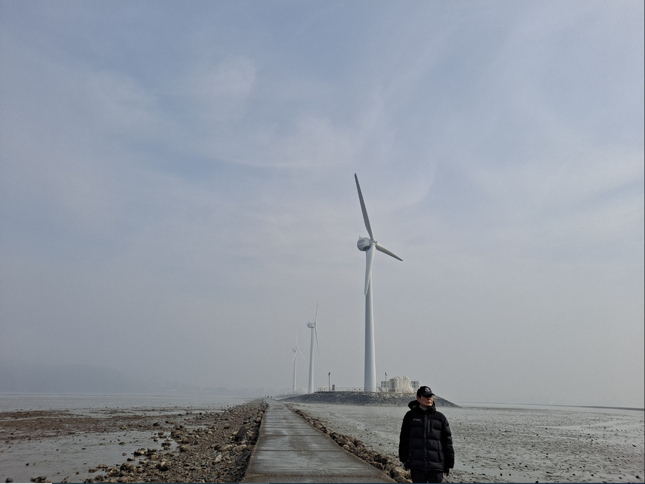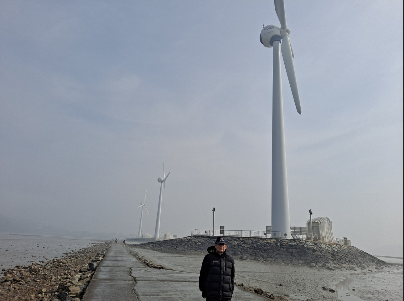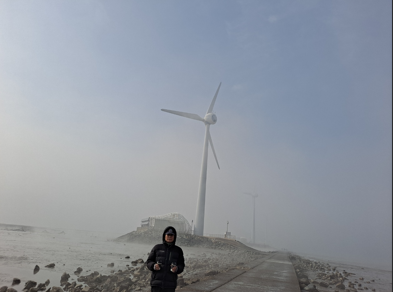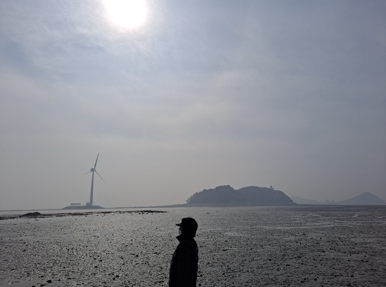 누에섬이라는 이름은 이곳 섬 모양이 누에처럼 생겨서 붙은 이름이다. 탄도항에서 부터 쭈욱 뻗은 시멘트 도로 옆으로 풍력발전기가 세곳이나 서 있다. 서해바다의 너무 짙은 안개가 바람에 실려서 자욱하도록 희뿌연 실비처럼 휘날리는 풍경이 흡사 안개비가 무대위를 조명처럼 흩날리는 연출된 풍경처럼 아름답다.