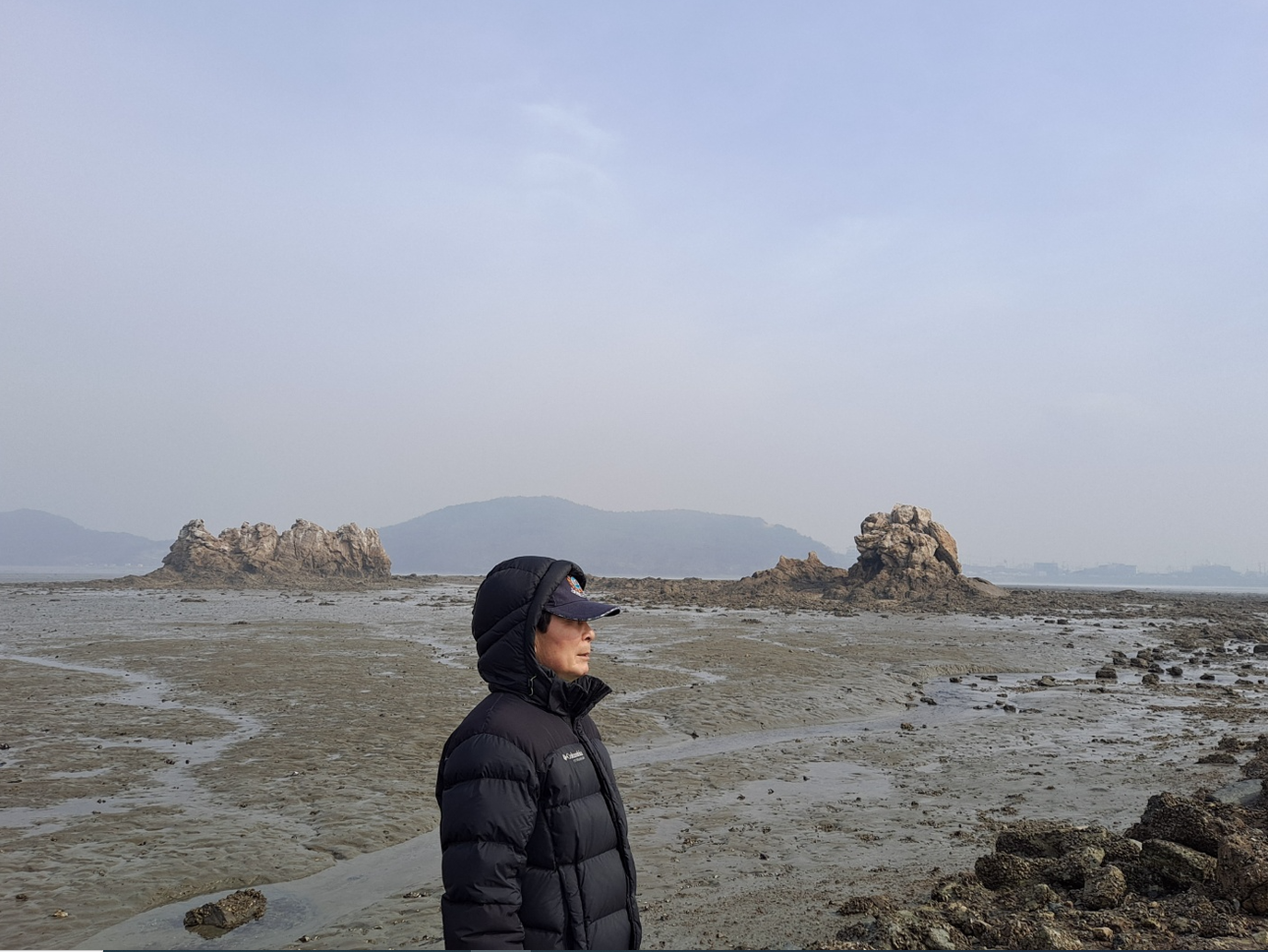누에섬 등대전망대로 오르는 계단에 서서 탁 트인 바다와 시원한 바닷바람을 즐길 수 있는 여유와 낭만을 즐긴다. 비록 짙은 안개인지 대륙에서 날아온 미세먼지인지, 자연의 섭리를 잘 알 수 없는 희뿌연 가림막 때문에 시야가 탁 트이진 않아도 그래도 비밀스럽게 풍경이 더 좋다.