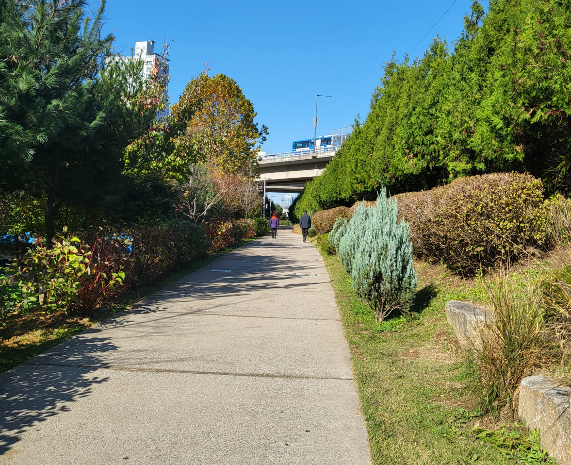 이렇게 지역간 이기주의 문제로 선로를 이설하거나 지하화하여 남는 부지 또는 폐철길을 공원으로 조성한 것이다. 그런 연유로 산책로의 폭은 좁고 길이는 긴 모양의 일자형 선형 공원이 되었단다. 경의선숲길은 옛 철길을 따라 여러 지역이 이어지는 연결녹지이며, 이런 공원의 옆으로 새로운 상권이 늘어서기도 한다는 고무적인 이야기도 있단다.