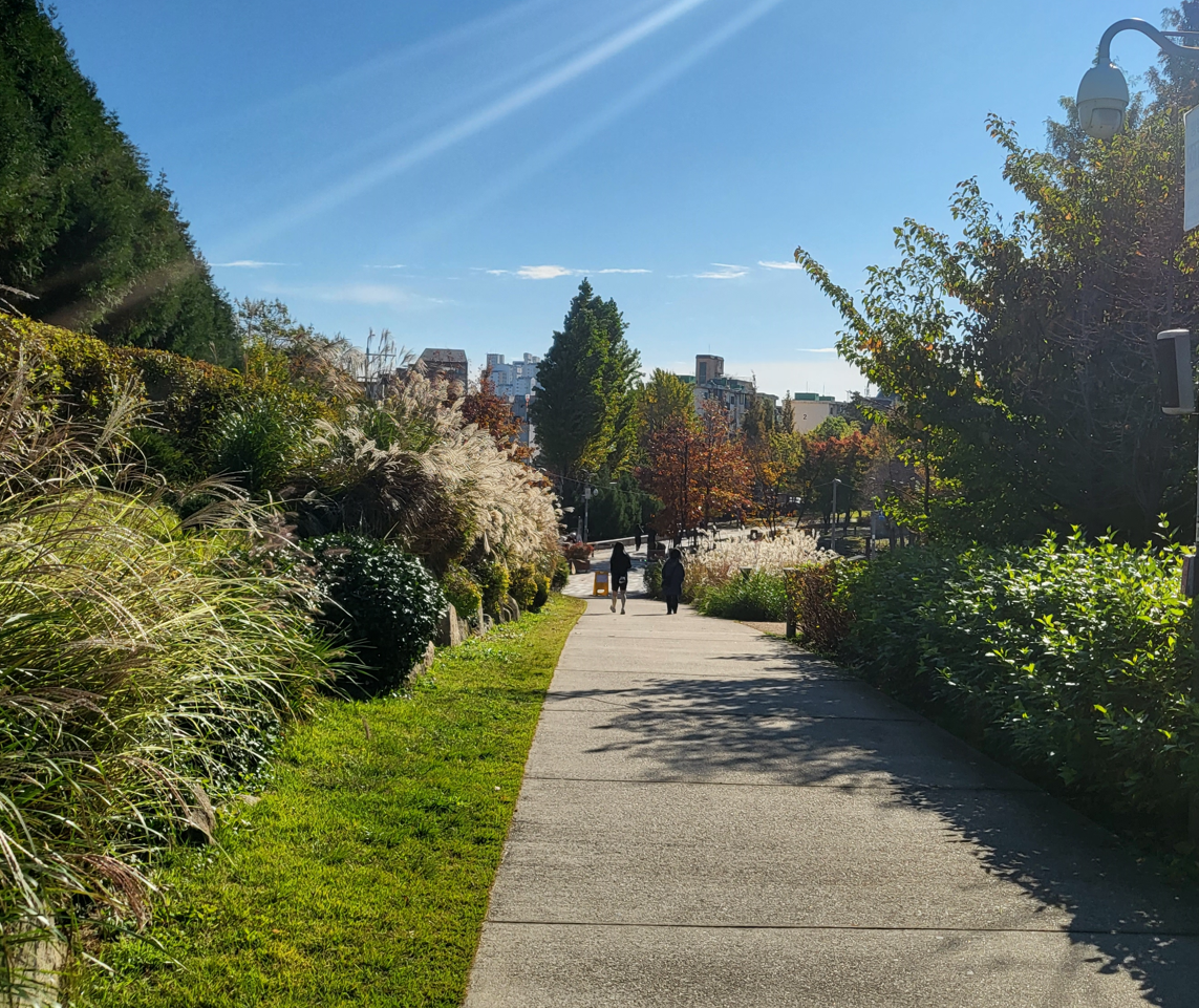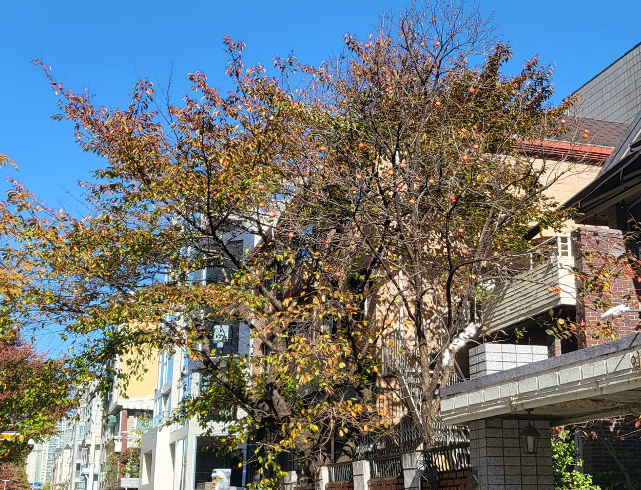 걷다보니 주택가의 어느 집 뜨락에는 붉은 감들이 주렁주렁 아직도 열려있다. 이 공원이 조성되면서 기존 주택은 숲세권이 되었다. 참 좋은 주거환경이 되었지만, 이 구역까지 가게들이 들어서면서 소음과 흡연 등등의 문제들도 생기고 있단다. 주민들은 이런 문제들을 가게들이 스스로 해결해 줄걸로 믿지만, 가게들은 그저 나 몰라라 하며 개선의 의지가 없단다. 거기에 수제맥주집 하나가 팝업스토어까지 열면서 미관을 해치고 있어서 많이 걱정스럽단다.