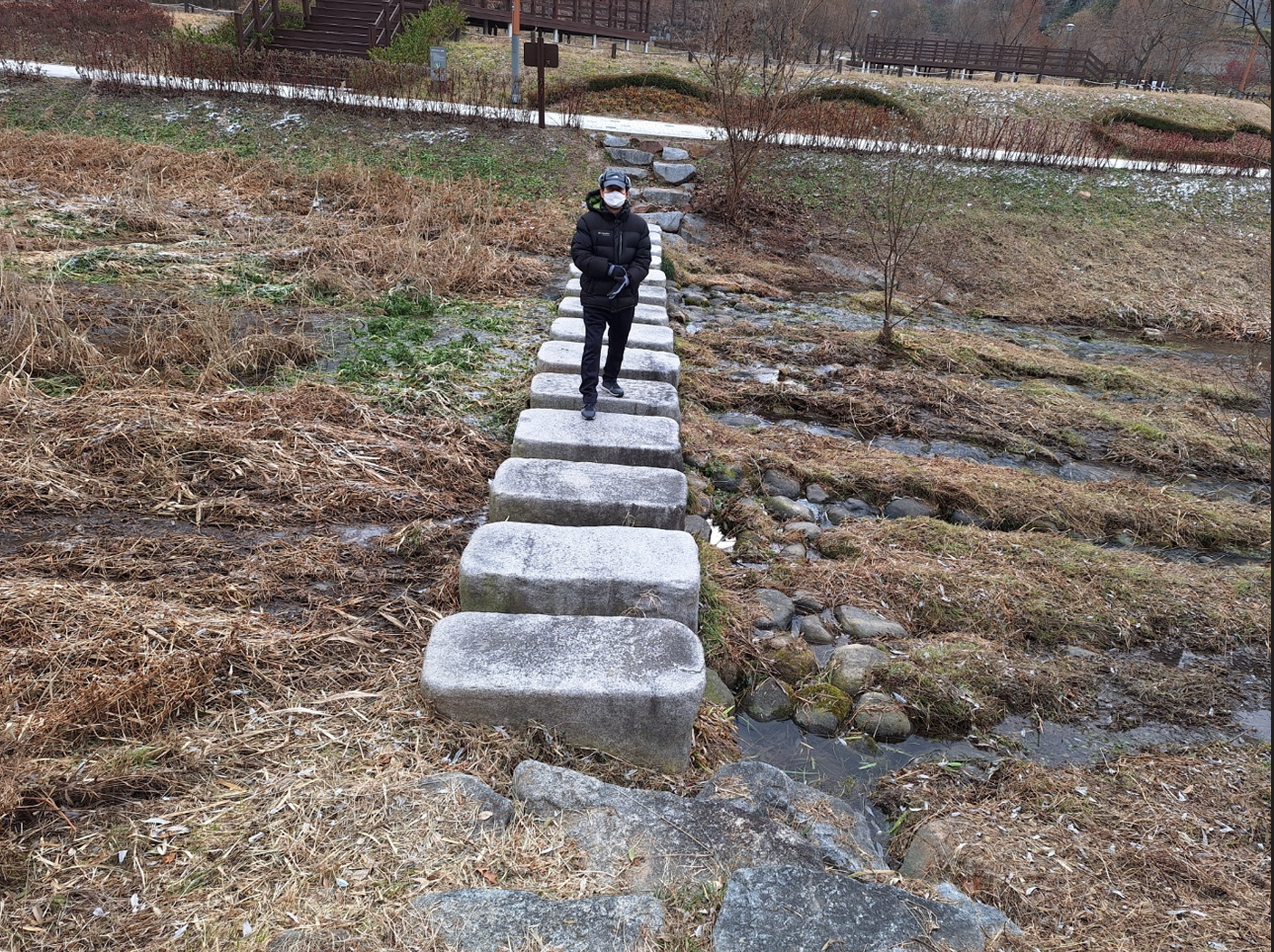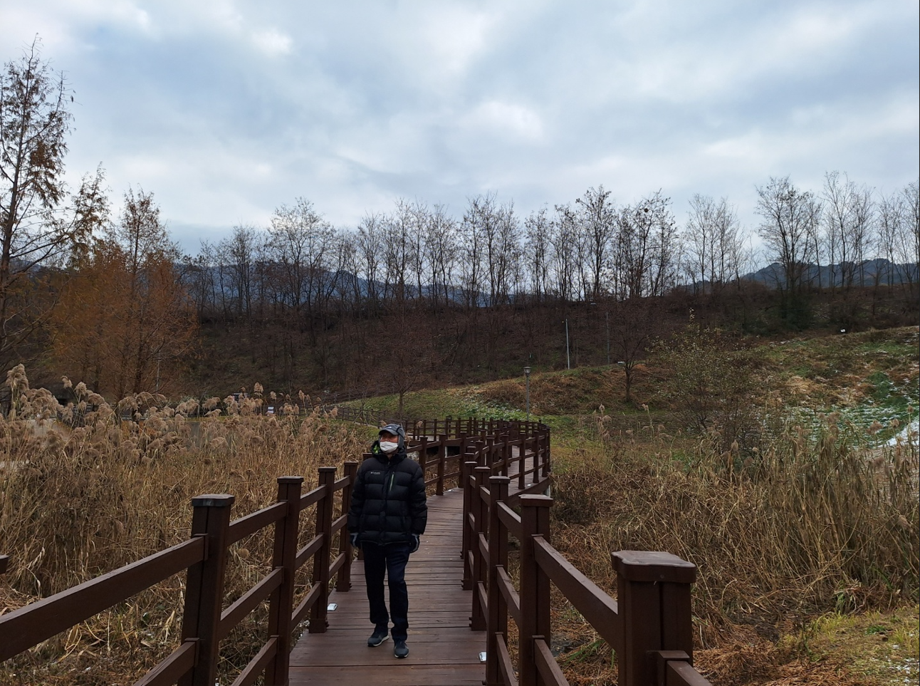 수변데크길에 무성한 갈대의 스적임 소리가 바람결에 들린다. 12월 초 첫번째 주말 영하의 기온이 머리에 쓴 모자의 귀마개까지 내려서 얼굴을 가리게 하지만, 역시 이곳 치악산의 공기는 반백년도 훨씬 더 지난 군 복무시절 그때 마시던 젊고 활기가 넘치는 싱싱함처럼, 오늘도 내가 마시는 공기는 조금 차겁지만 부드럽게 맑고 곱게 싱그럽다.