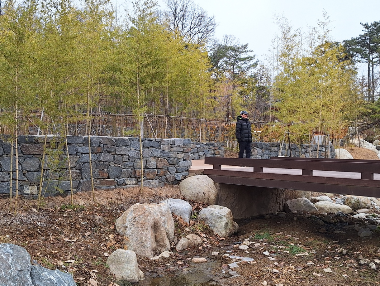 아침부터 우중충한 날씨에 눈이 내리려나 생각하며 공원길을 두번째 돌아들고 있는데, 우산을 준비하지 않았음을 아는지 겨울비가 한두방울씩 흩뿌리기 시작한다. 이곳의 걷기 코스는 정말 기가막히게 잘 다듬어 놓은 산책로라고 감탄하며 걸었다. 봄, 여름, 가을, 겨울 사시사철 어느때 어느 시간에 걸어도 무난하게끔 잘 만들어 놓았다. 둘레길과 산책로를 매주말마다 자주 걷는 내게는 이곳이 최고 최적의 장소였다.