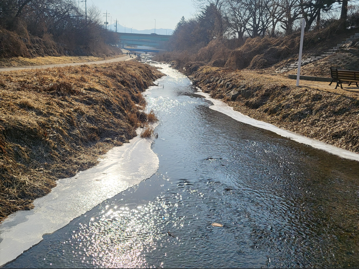 양재천을 걷는 이곳은 천천히 걷는 사람들보다 빠르게 뛰면서 조깅하는 사람들이 훨씬 더 많다. 부잣동네를 흘러서 그런지 젊음이 휘감아 내리는 개천이라는 생각이 든다. 한주일 내내 영하 10도를 넘나드는 맹추위가 오락가락 하더니만, 토요일인 오늘은 영하4도의 비교적 포근한 겨울 날씨이다. 햇볕이 포근하고 따스하게 내려 덮이는 개울가에는 아직도 얼어붙은 얼음조각들이 또 어린날의 추억을 소환해 준다.