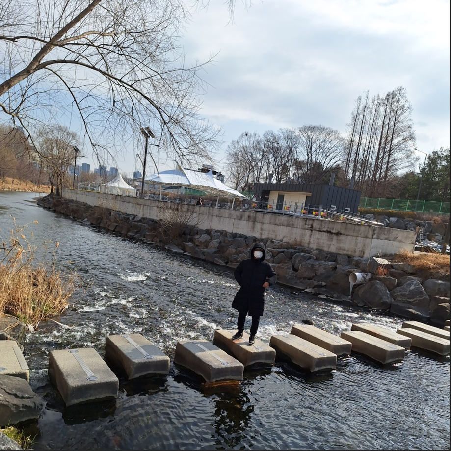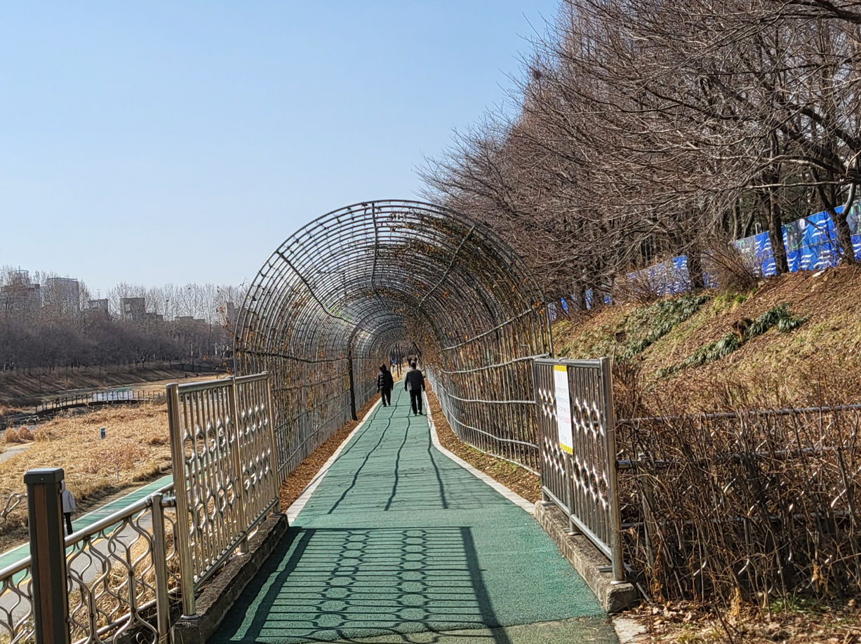 만보걷기를 목표로 정하고 표지판에서 안내하는대로 징검다리를 건너 양재천 산책로에 내려섰다. 양재천을 따라 조성된 산책로와 자전거길이 색으로 구분하며 길게 뻗어 있다. 맑은 물이 흐르는 양재천 개울안에는 한가로이 노니는 철새들의 움직임이 바쁘다. 아직은 봄이 오려는 삼월의 초입이라서 누렇게 마른 풀과 헐벗은 나무들만 보이지만, 곧 봄이 찾아오면 초록과 풍성함이 넘치는 곳으로 탈바꿈할 것이다.