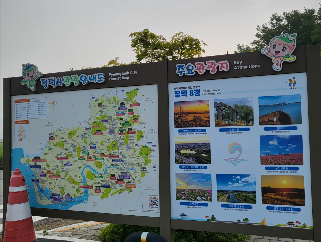 소풍정원 앞에서 평택시 관광안내도를 만난다. 평택 8경은 농업생태원, 배다리생태공원, 소풍정원, 오성강변, 원평나루 갈대숲, 진위천유원지, 평택항, 평택호 관광단지 등이다. 평택의 수려한 자연환경을 품은 관광지를 평택8경으로 선정된 이곳을 아직도 두어곳은 못 찾아 갔으니, 내 두다리로 당당하게 걸을수 있는 그 시간까지 열심히 찾아 다니련다.