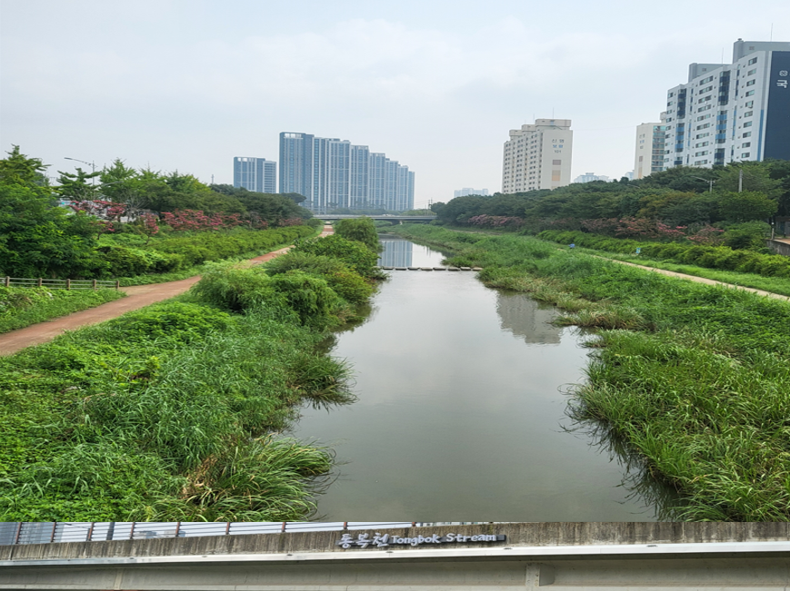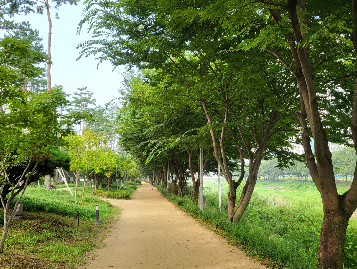 입추, 말복, 처서로 절기가 바뀌고 세월은 흐르는데도 올해는 찜통더위가 도무지 물러설 기미조차 보이지 않아서, 8월의 네번째 주말에는 경기도 평택시 통복천의 바람길숲 6.4 ㎞를 걷기로 했다. 2018년 기획재정부와 산림청에서 국민 삶의 질 개선과 미세먼지 저감을 위해 국비 공모에 선정된 사업으로, 국비 100억 원을 포함하여 총사업비 200억원으로 2021년까지 통복천 3.2㎞ 구간에 '바람길숲'을 조성하였다.