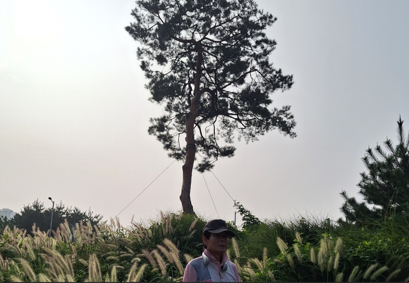 개울가에 우뚝 서서 외롭게 기상을 뽐내는 금강 소나무의 모습이다. 내 어린시절에는 솔나무라고 불렀던 기억이 난다. 의연한 이 모습이 소나무는 한자로는 松(소나무 송)을 쓰는데, 뜻을 나타내는 '木(나무 목)'과 소리를 나타내는 '公(함께 공)'을 합친 형성자를 생각하게 한다. 그러나 일부 학자는 나무 중에서도 최고의 작위(公: 公爵)을 가진 나무(木)라는 뜻으로 만든 회의자로 해석하기도 한다.