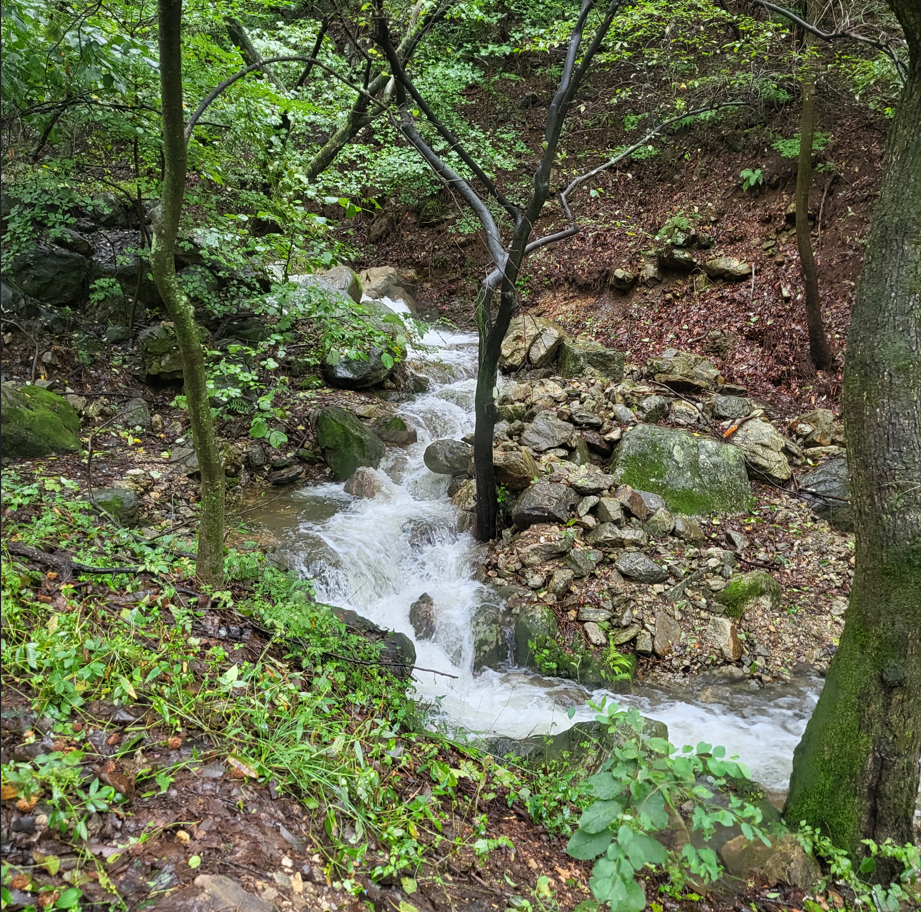 올해 여름은 우리나라 폭염의 역사를 새로 쓰면서 열대야의 기록까지 모두 갈아치우면서 추석이 지나도록 그렇게 무덥던 여름날이, 오늘은(9월 21일) 갑자기 비와 함께 기온이 급강하해서 32도에서 17도로 뚝 떨어져 좀 쌀쌀하다. 습관적으로 걷는 만보걷기를 위하여 복장도 역시 반팔차림에서 긴팔차림으로 바꿔입고 길을 나섰다. 백운산에서 계곡마다 흘러 내리는 물소리가 소나기와 어우러진 덕택에 아주 시원스럽게 들린다. 바람결도 서늘하고 물소리도 청량하게 맑아서 걷기에 아주 좋은 구월의 산행이다.