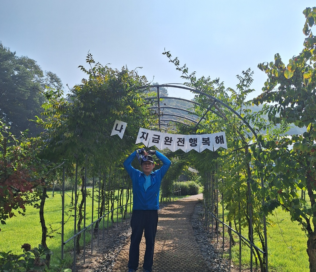등나무 터널로 조성된 둘레길 입구에 서서 '나 지금완전행복해'라는 글자를 보면서 나도 역시 덩달아 완전 행복해 진다. 이제는 더이상 원하는 꿈도 바라는 그 무엇도 없이 여유로운 나이가 되어보니, 인생의 작은 행복이 뭔지 조금은 알게 되는것 같다.