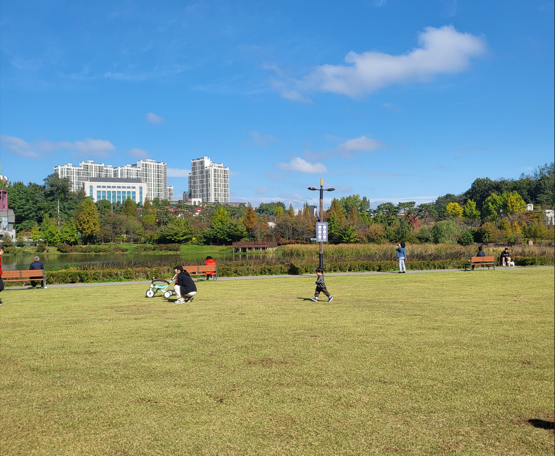 수목원의 정문으로 들어서면 곧바로 만나게 되는 넓게 펼쳐진 잔디밭이다. 잔디밭(Lawn)’은 황야(heath), 또는 황무지(moor)라는 의미를 가진 프랑스 고어 ‘Launde’에서 유래했다. ‘안마당(Yard)’이라고도 한다. 잔디밭이 항상 장식적인 기능만을 하는 것은 아니기에, 잔디밭에서 어린 아이들이 즐겁게 뛰어놀 수 있는 공간을 제공하기도 한다는 점에서 아름답게 유지되는 모습으로 보인다.