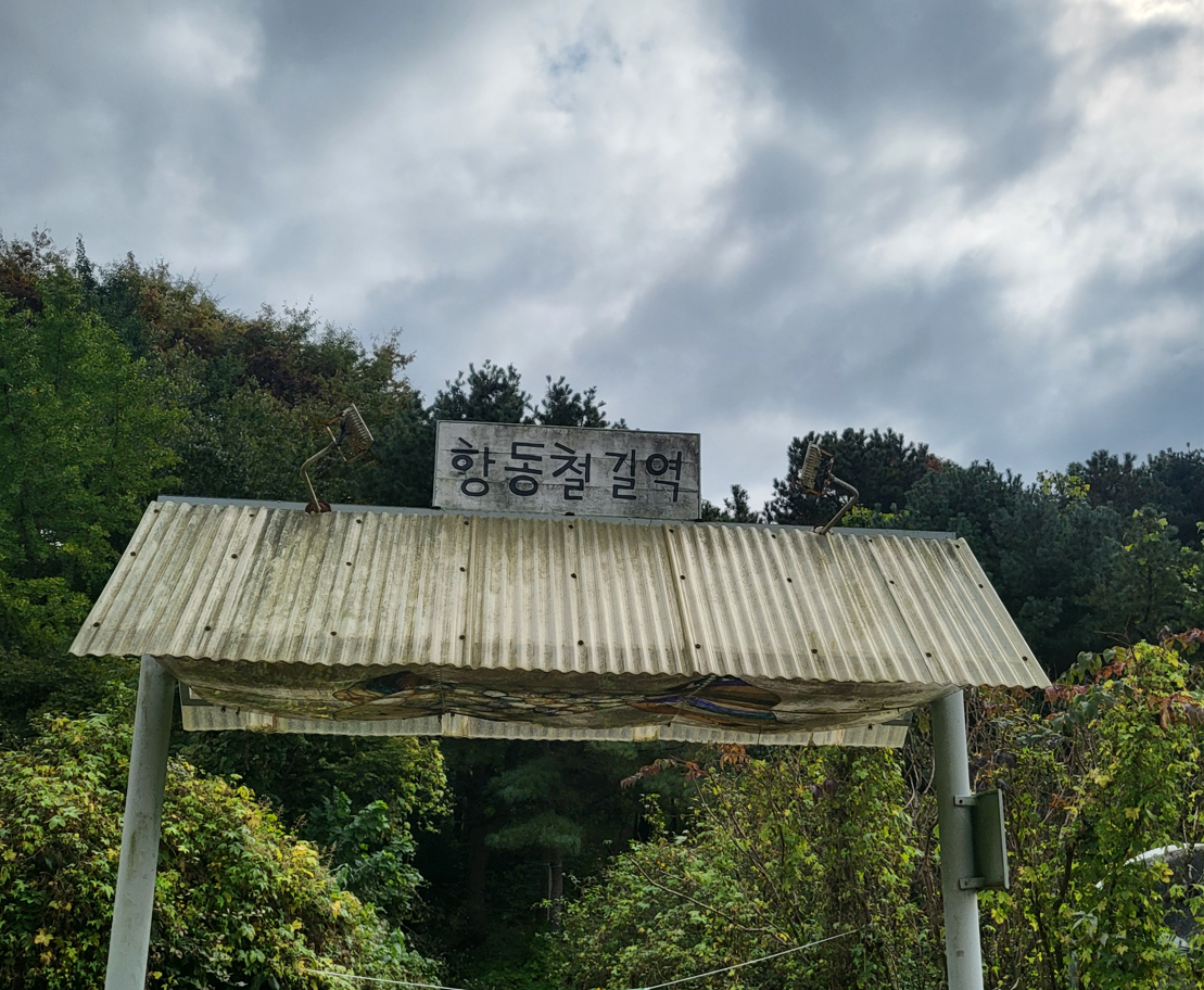 남과 북으로 누가 왜 이곳에 이런 이정표를 만들어 놓았는지 알 수는 없지만, 이곳 항동에서 개성까지 80km, 땅끝마을 해남은 325km라고 써 놓았다. 원래 이곳은 단선 철도이며 산업용으로 사용되었으나, 이용 빈도가 극히 적었다. 서울시에서는 철로 주변에 위치한 항동저수지를 포함하여 항동기차길 일대를 푸른수목원으로 조성하였으며, 철로는 향후 레일바이크 선로로 이용할 예정이었지만, 지금은 그대로 남겨둔채 2014년 서울시에서 서울 미래유산으로 지정하였다.