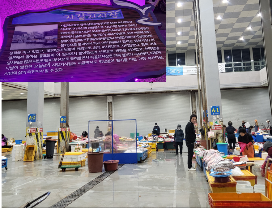 자갈치 시장은 ‘오이소! 보이소! 사이소!’로 더 유명하다. 부산사투리 특유의 정겨움이 물씬 묻어나는 곳이다. 이 시장에서는 살아있는 횟감을 그 자리에서 고르면 즉석에서 회를 떠 준다. 부산을 찾은 관광객이 한번쯤은 반드시 들르는 대한민국 최대의 수산시장이다. 부산출신으로 우리와 함께 일하며 매일 가이드를 해주는 동료가 이곳 노점에서 파는 칠백원짜리 믹스커피를 한잔씩 사주면서 새벽 추위를 녹이란다. 참으로 고맙고 정겨운 이웃이다.