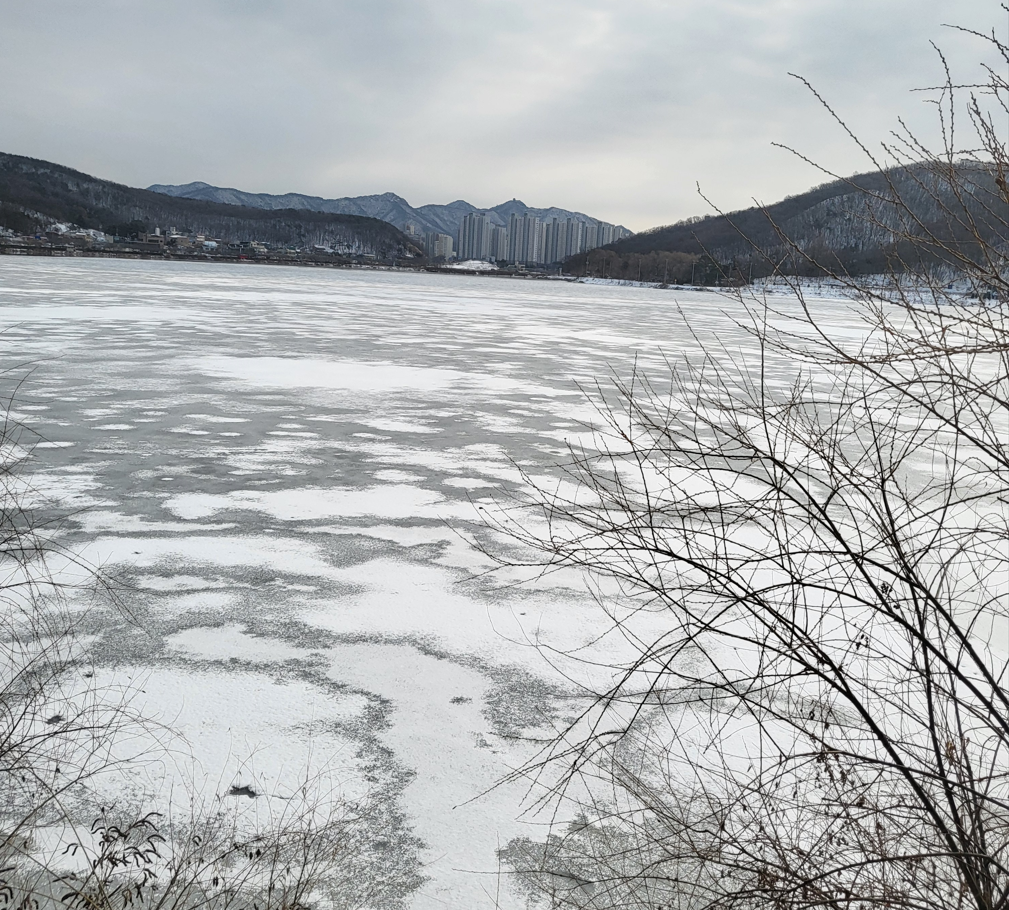 습관적으로 나에게 주어진 시간에서 여유가 되면 걷기를 즐기는 버릇으로 이곳 7000보 쯤은 거뜬하게 한시간 이내에 걷는다. 걷는 발걸음만 가볍고 즐거운게 아니라 인생자체도 늘 이렇게 즐겁고 행복하다. 내 삶에서 감당할 수 있을 만큼의 꿈과 소망으로 살아왔기에 작은 불만조차 있을 수 없으니 매사에 항상 감사하며 인생길을 걷는다. 명절에 우리집으로 모두 모였던 일곱명의 손주들이 각자의 집으로 돌아간 이후에 한가로운 오늘도 이렇게 얼어붙은 물왕호를 찾아와서 건강하게 걸을 수 있음에 마냥 감사한다.