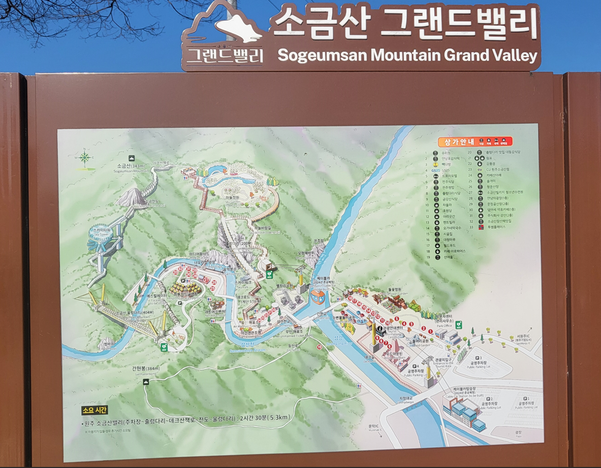 2월의 마지막 토요일 만보걷기 코스는 강원특별자치도 원주시 지정면 소금산길 12에 위치한 소금산 그랜드밸리를 찾았다. 영하 6도의 추운 날씨임에도 간현관광지 주차장에는 많은 탐방객들이 주차장을 채워주고 있다. 원주시에서 서쪽으로 18km 떨어져 있는 이곳 간현관광지는 남한강 지류인 섬강과 삼산천(三山川)이 합쳐지는 지점에 자리한 유원지이다.