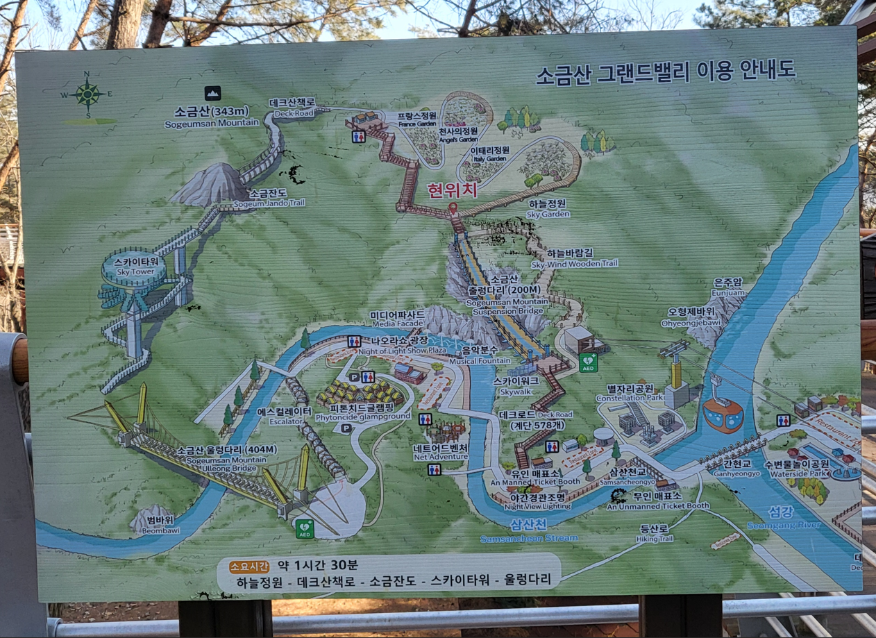 등산로 입구에서부터 울렁다리 종점까지 약2.7Km를 걸어야하는데, 초입에서부터 이어지는 약700m의 데크길이 오르막 계단이다. 케이블카를 타고 올라오는 무장애길이 조성되어 있으나, 2월25일 개통예정으로 오늘은 케이블카 운행이 안되고 있다. 케이블카는 약 972m의 거리를 편도로 약 5분 30초의 이동시간이 소요되며 탑승료는 9,000원이란다.