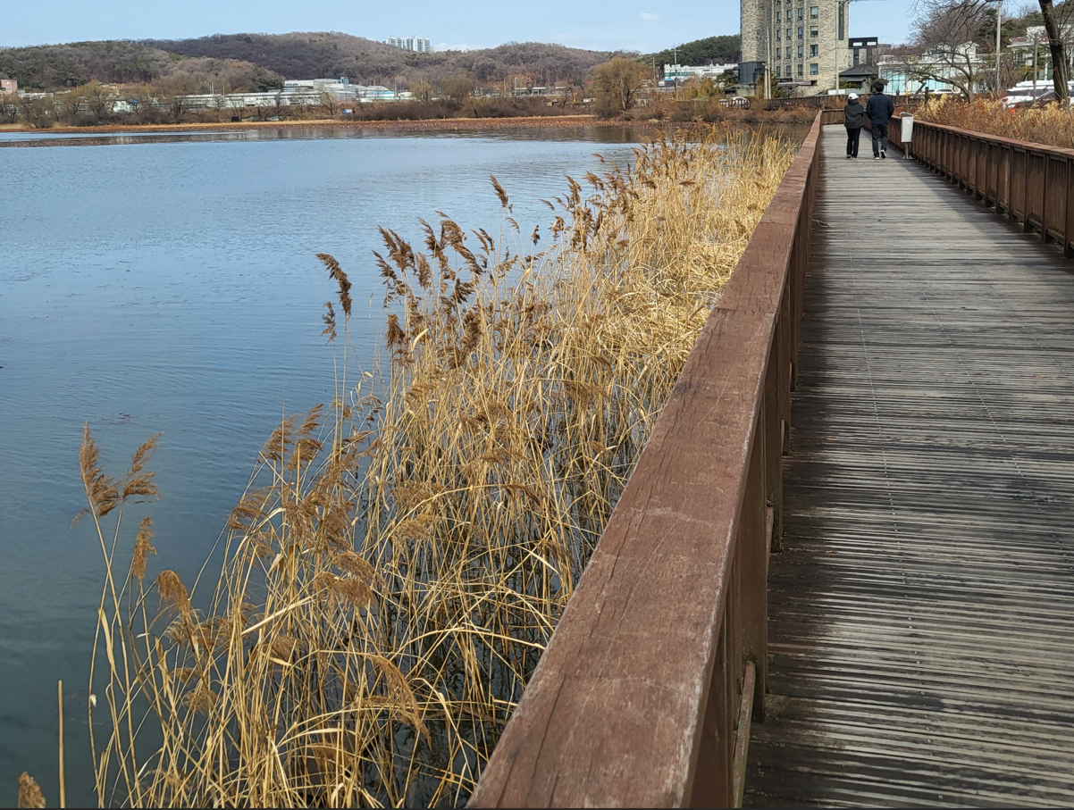 잔잔한 호수위에 각종 새들이 지저귀며 날아들고 이름모를 수초생물들이 이곳을 찾는 이들의 마음을 평온하게 한다. 오늘도 이 길을 걸으면서 어린시절에 자주 만났던 때까치와 물오리들이 떼지어 노닐고 있는 모습에서 추억을 반추하는 평안도 맛본다.