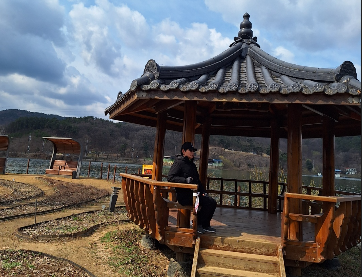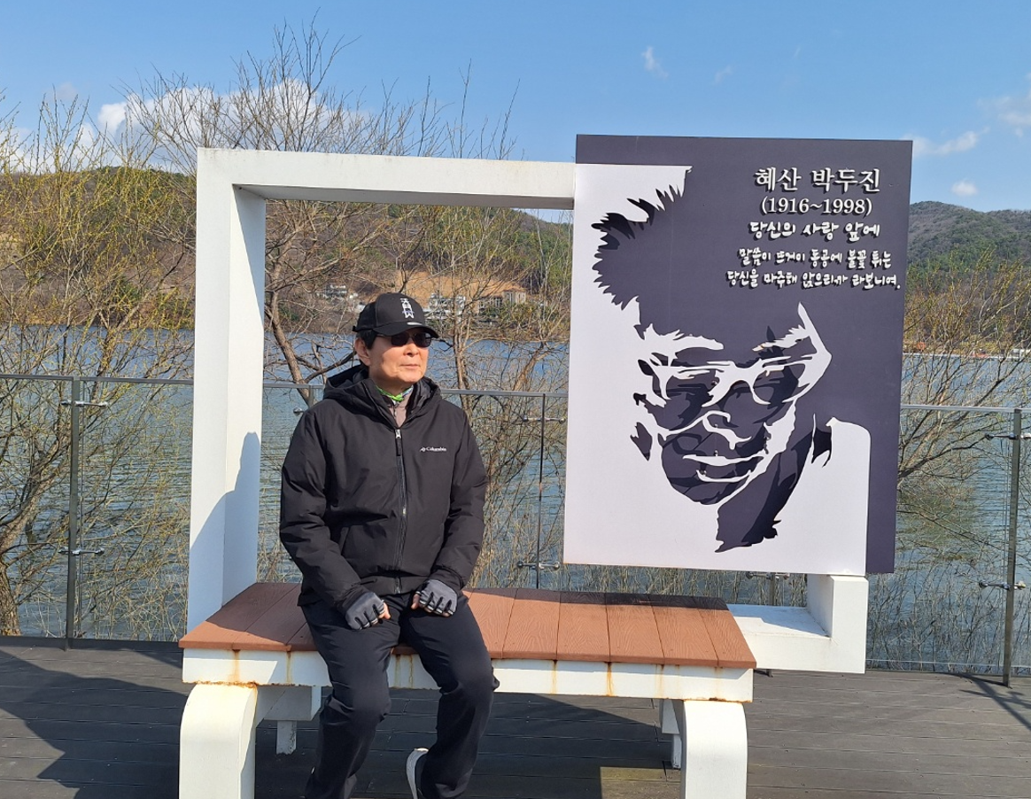 광명고개를 향하여 혜산정에서 약1.8km를 걸으면 호수 데크길로 수석정을 만나게 된다. 수변 데크길을 걷는데 눈이 내린다. 이틀남은 3월에 거세게 쏟아지는 함박눈을 만나니 "신앙이 없는 문학은 허무주의에 이르고 만다”며 하늘의 뜻을 섬기며 살았던 박두진 시인의 믿음이 문득 떠 오른다.