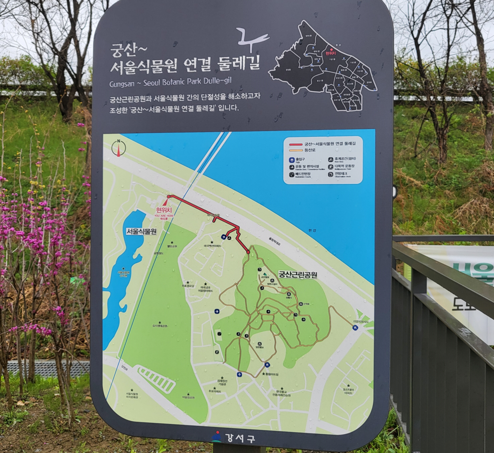 궁산근린공원과 서울식물원이 연결된 둘레길 안내판이다. 궁산근린공원과 서울식물원간 단절성을 해소하고자 서울시에서 조성한 둘레길이란다. 이곳 서울식물원의 주제원 · 열린숲 · 호수원 · 습지원 등 4 개 공간을 모두 돌아들었더니 이미 만보계의 숫자가 만보를 넘어섰기에 오늘은 이만 참아야 한다.