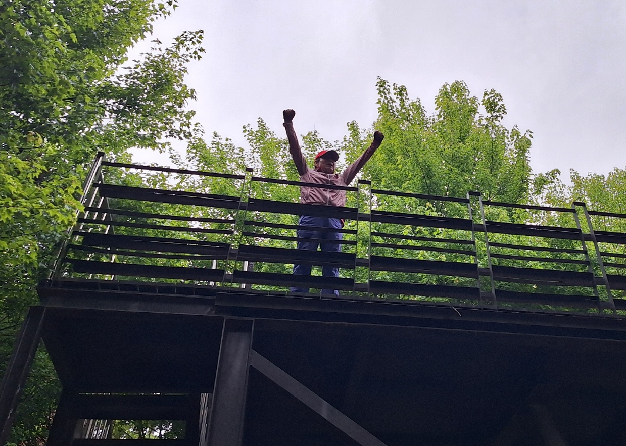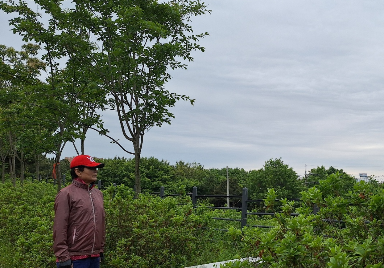 전망대에 올라 시화방조제를 내려다 볼 요량으로 계단을 올랐으나 울창한 숲이 우거져서 시야를 모두 가려 전망이 보이지 않는다. 짙푸른 나무숲과 봄빛 하늘이 어우러진 곰솔누리숲이 너무 좋아서 하늘을 향해 두팔을 벌리고 감사의 환성을 토해 낸다. 한마디로 아주 시원하다.