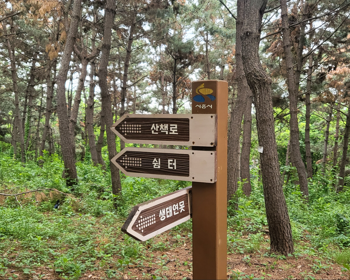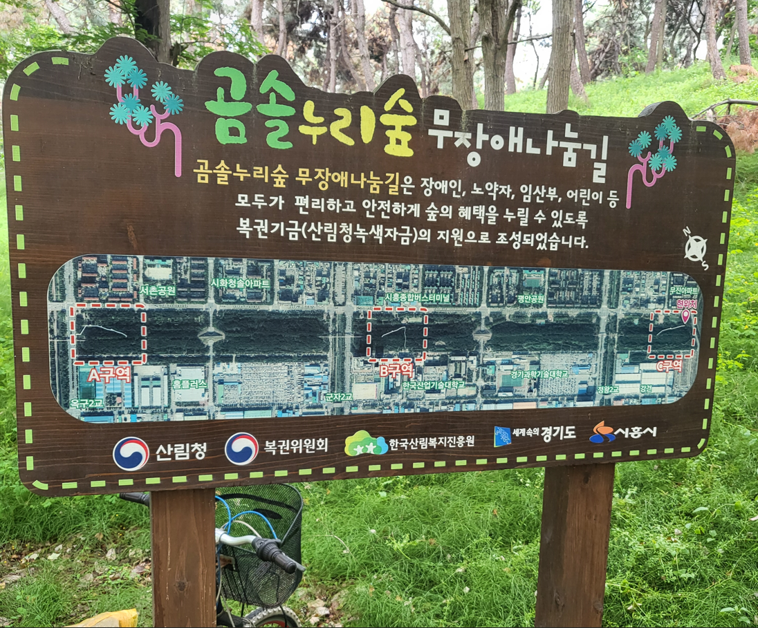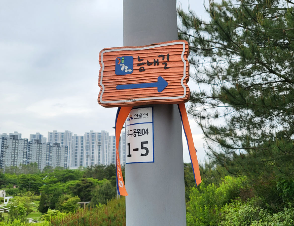 이곳은 시흥 늠내길 제5코스인 정왕동둘레길로 옥구공원 -> 곰솔누리숲 -> 시흥천 -> 정왕체육공원 -> 정왕역 -> 철도녹지 -> 오이도역 -> 함줄도시농웝공원 -> 해안녹지 -> 옥구공원까지 약 13Km를 돌아드는 산책로 코스와 맞물린 코스이다.