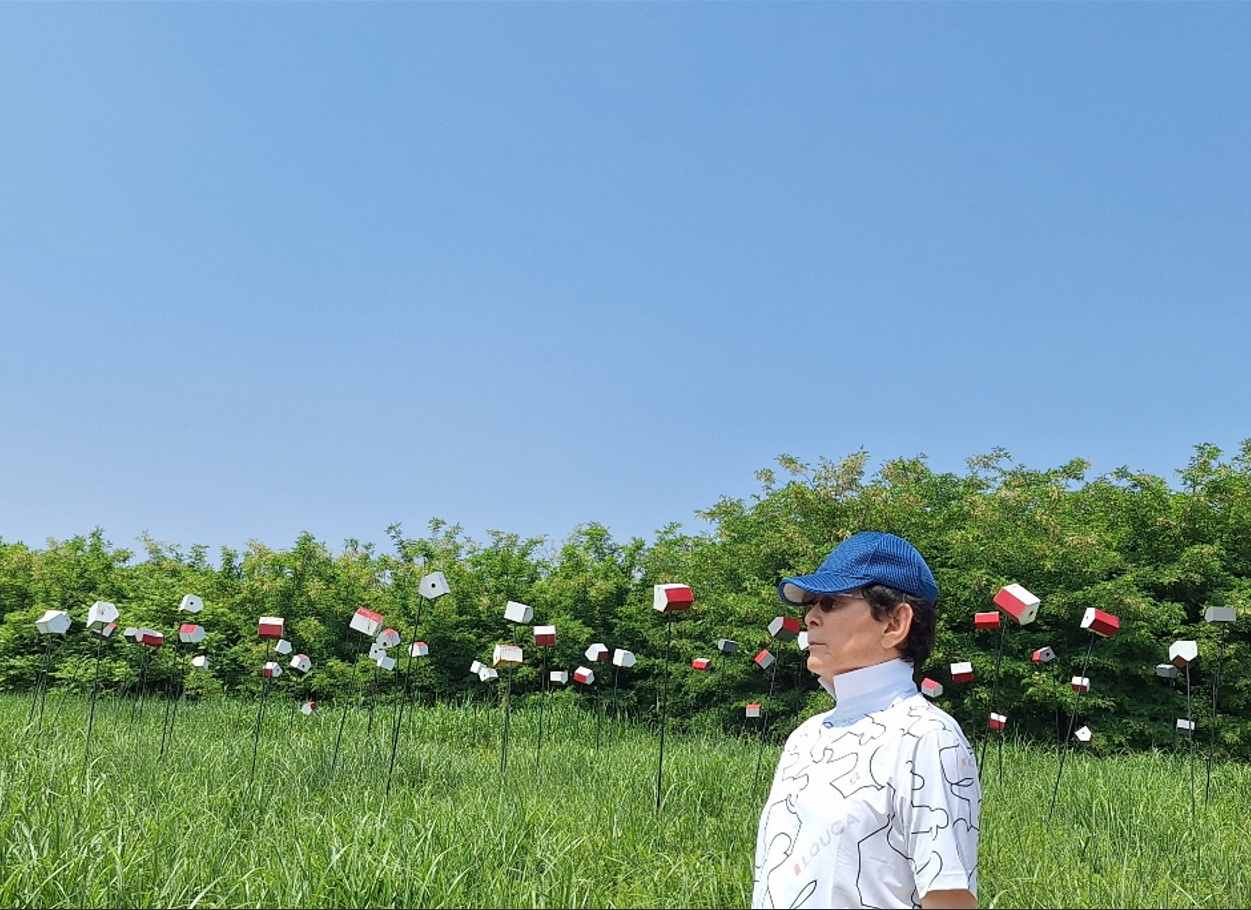 둥지라는 작품의 표지판이다. 둥지는 대부분의 동물에게서 볼 수 있는 안식처, 은신처, 방어의 장소, 산실, 육아실 등으로 이용되는 공간. 좁은 뜻으로는 단순히 기존 장소의 이용이 아닌, 동물자신이 어떤 수단으로 만들어낸 공간이다. 둥지를 만드는 행동을 영소라 한다.