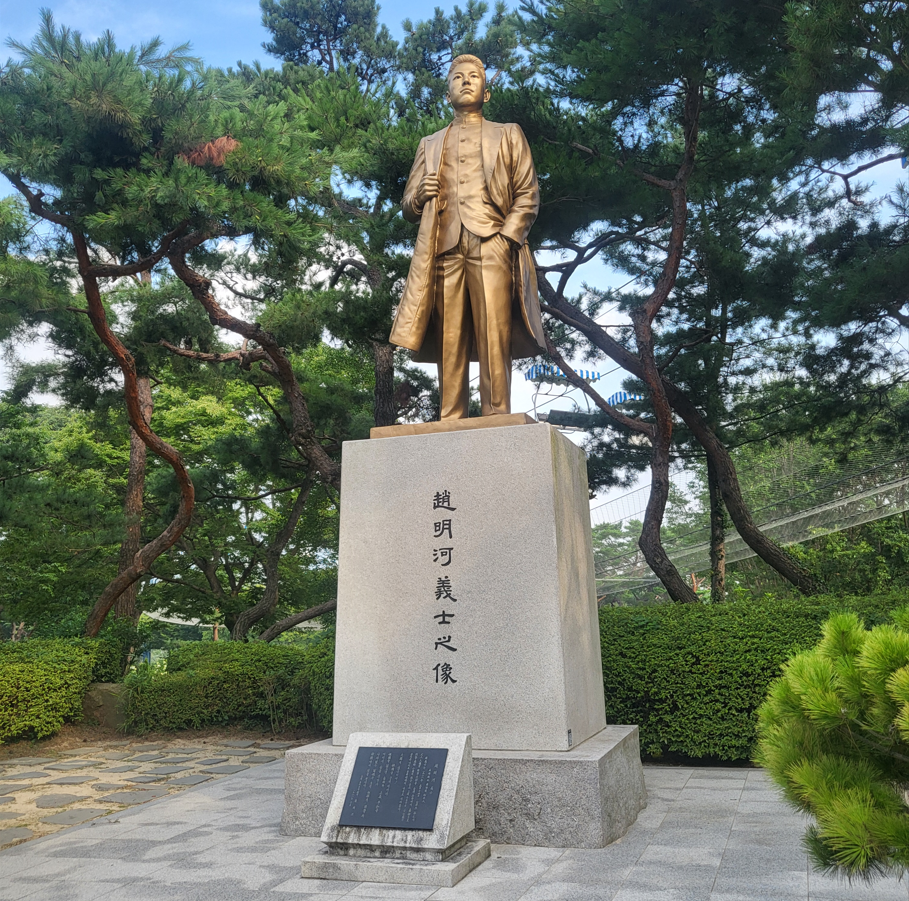 조명하 의사 동상이다. 그는 1928년 5월 일본의 국구(쇼와덴노의 장인이자 고준 황후의 아버지)인 육군 대장 구니노미야 구니요시 왕이 육군 특별검열사로 대만에 파견된다는 보도를 접하고 그를 처단하기로 결심했는데, 5월 14일 타이중에서 열린 환영식에서 구니노미야가 탄 차에 뛰어올라 독을 묻힌 칼을 집어던졌고, 현장에서 체포되었다. 칼이 구니노미야의 목을 스치고 운전사 등을 찌르는 데 그치면서 구니노미야는 대만 일정을 예정대로 모두 소화하고 일본으로 귀국했다.