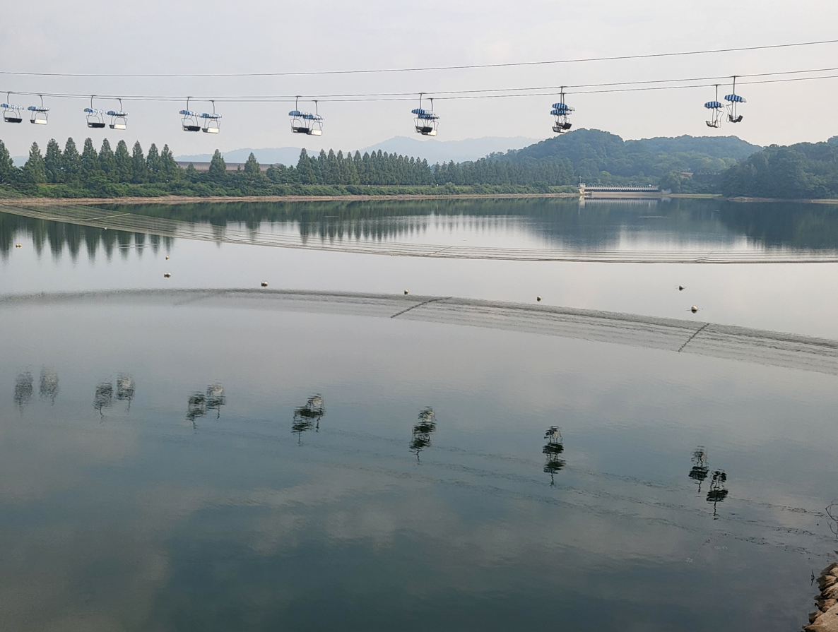 호수위를 가로지르는 리프트 카의 모습이다. 1991년 7월 리프트카를 운행 개시하였으며, 오늘은 운행하지 않는걸로 미루어 아마도 쉬는 날인가 샆은 생각으로 혼자서 지레짐작한다.