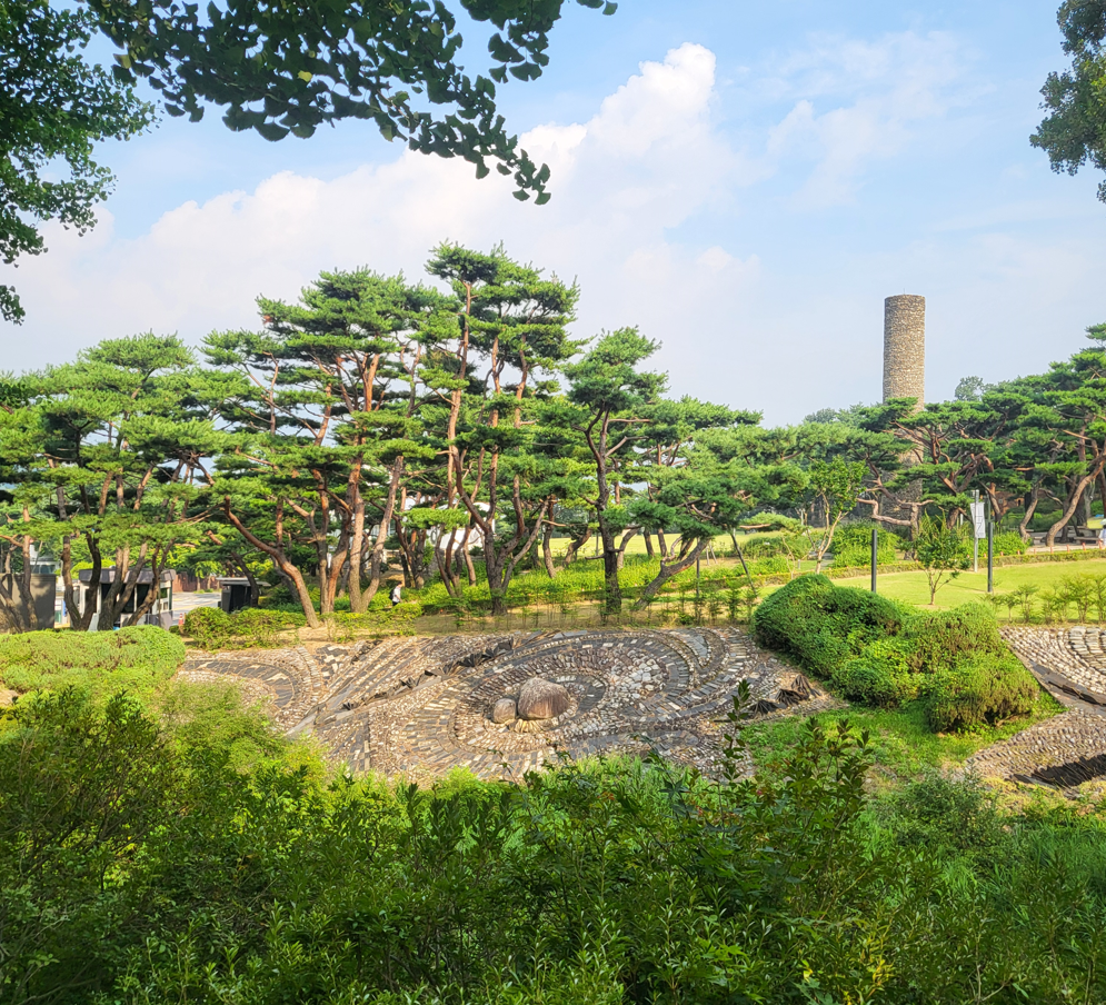 미술관을 내려오는 길에서 마주친 개울가에 쌓아놓은 석축의 모습이 흡사 뚝방에 그려진 예술작품으로 멋지게 보여진다. 푸르게 어우러진 소나무 숲과 가늘게 흐르는 시냇가 물길을 따라 여러가지 모양의 돌멩이로 쌓아놓은 그림이 너무 아름다워서 발길을 멈추고 잠시 이 작품을 감상하는 시간을 가졌다.
