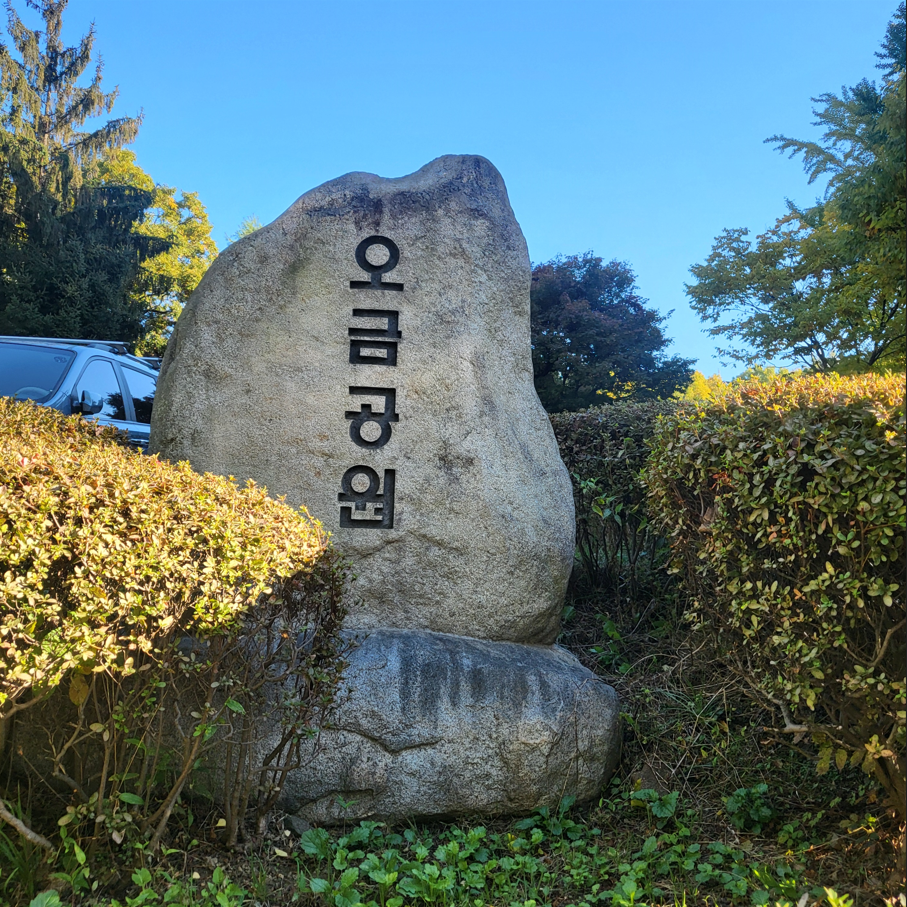 공원 내 9개 코스의 산책로 곳곳에는 이렇게 이정표가 화살표 방향을 따라 오금오름공원, 중앙광장, 오금역, 화장실 등을 친절하게 안내하고 있다. 이곳은 도시화가 급속히 전개되면서 전통적인 농촌의 모습이 거의 사라졌기 때문에 도심지 안에서 이렇게 맑은 숨을 쉬도록 만들어 놓은 공원은 만나기가 그리 쉽지 않은 곳이란다.