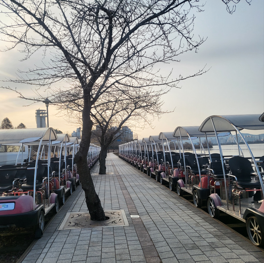 정거장에 주욱 늘어선 레일바이크 모습이다. 레일바이크 코스는 탑승장 -> 꽃터널 -> 조류생태구간 -> 정차장 -> 포토존 -> 스피드존(왕송호 제방 위 직선 구간) -> 분수터널 -> 탑승장 순으로 구성되어 있다. 구성을 보면 알 수 있듯이 겨울보다는 봄과 여름에 더 볼거리와 즐길 거리가 많다고 한다. 야간에도 레일 일부 구간은 LED를 켜 놓아서 사진이 그럴듯하게 나온다고 전한다.