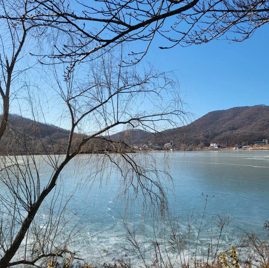 물왕호수 둘레길의 멋진 모습이다. 호수의 물길이 모두 꽁꽁 얼어 있어서 얼음위 데크길을 걷다보니 가끔씩 얼음이 갈라지는 호수의 밑바닥 소리가 자르륵~~ 꽈르륵~~ 들린다.